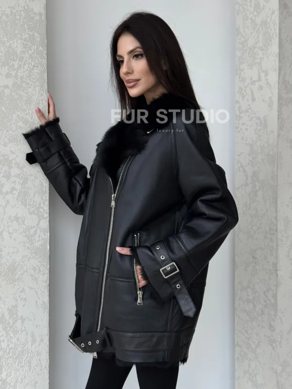 Черная дубленка - авиатор на тоскане. Модель предлагается в размерах от 42 до 58. Оптимальная длина моделей 85-90 см подчеркивает линии вашей фигуры. Эта дубленка станет неотъемлемой частью гардероба для тех, кто предпочитает роскошь и утонченность натуральной кожи.