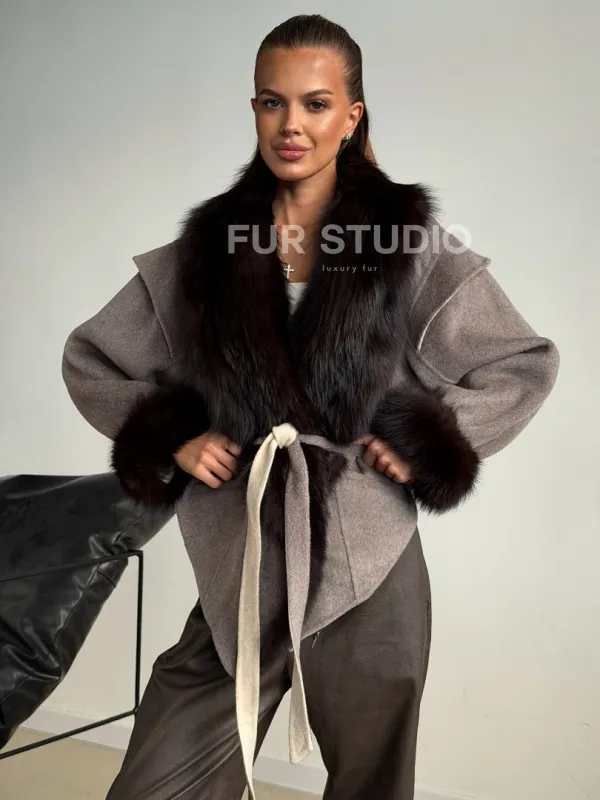 Пальто с мехом фишера 102589
